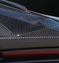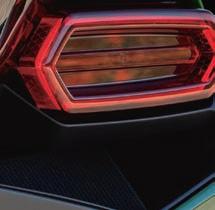 通風孔彷彿車頭呼吸孔,下方擾流板呼應空力 結構。車側弧線結合銳利折面,空氣進出路徑 車尾突顯細節則包括六角尾燈與六角排氣尾管 設計,全車比例更為緊湊但力道十足,與傳統 的劇烈氣場相呼應。