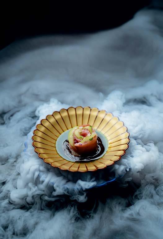 過程,但我相信隨著時間推移,它能像無菜單料理 (Omakase )等概念一樣被加拿大人接受。」他以 獨特的眼光看待食物,將之視為藝術和表達的形 式,把美感、味覺和創意融入其中。