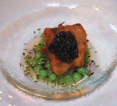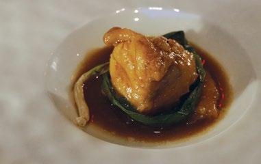 無一絲腥味。鰻魚坐於清澈的甜豌豆高湯中,夏 季的豌豆的甜賦予了清爽不膩的口感。伴隨慷慨 的一大勺鱘魚魚子醬入口,汁液遍佈口腔,散發 出其微妙的奶油和堅果香,與鰻魚和甜豌豆的香 氣糅合在一起,令人欲罷不能。