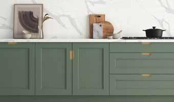 Doors: Mornington Shaker Outline Stone & Porcelain Worksurface: Sensa Granite Vancouver Outline handle: Edge with matching backplate