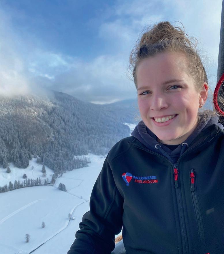 hij is de jongste instructeur in Europa, en begon het bij Jolien ook te kriebelen. In november rondde ze de theorie af, nu is ze druk met praktijkopdrachten. Als ze die goed heeft afgerond, mag ze examen afl eggen. “Hoe het voelt om in een ballon te varen? Dat is bijna niet in woorden te omschrijven. Je bent in een andere wereld, weg van de drukte. Het is stil en rustig boven en alles onder je is zó klein. Het voelt als een avontuur en de tijd vliegt voorbij.”
