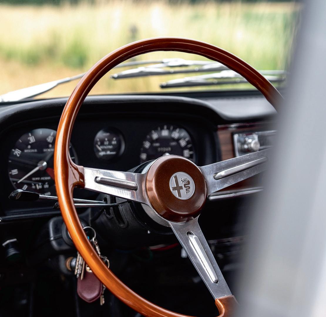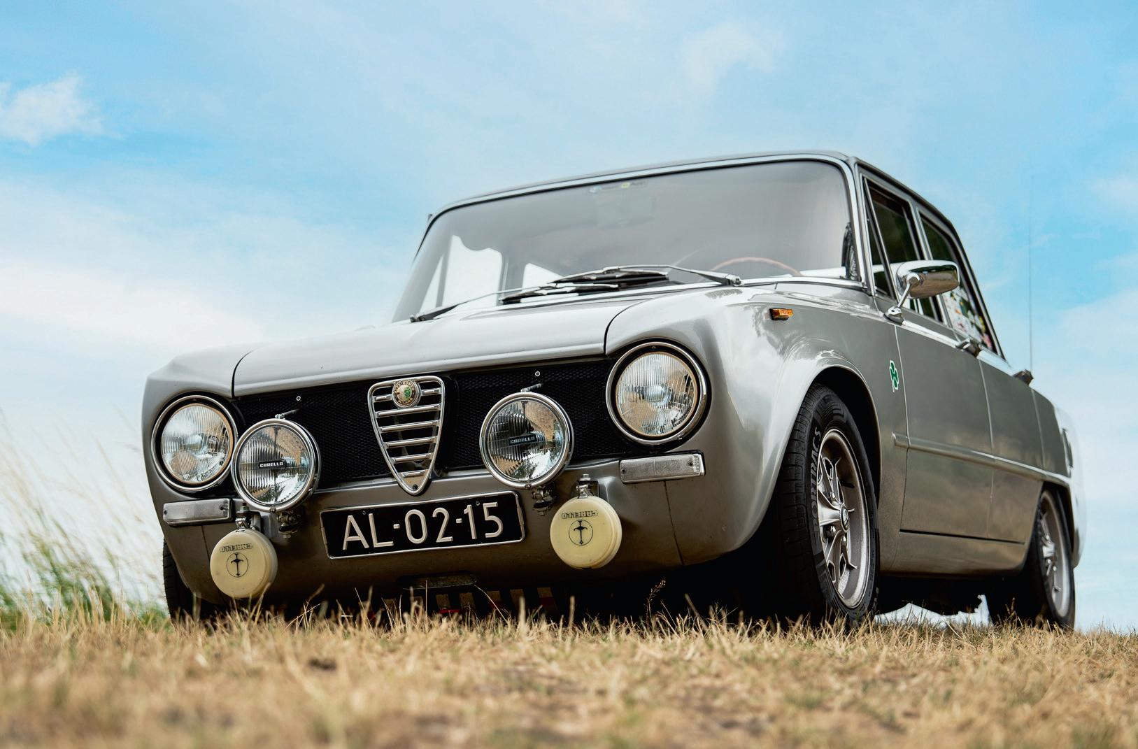 “De Alfa Giulia. In 1962 zijn ze op de markt gekomen en diegene die ik heb, is van 1971, de tweede serie. Deze zijn geroemd om hun wegligging. Ze liepen hun tijd ver vooruit, omdat de Alfa Giulia schijfremmen had en een vijfbak. De wegligging is echt fenomenaal, nu nog steeds.”