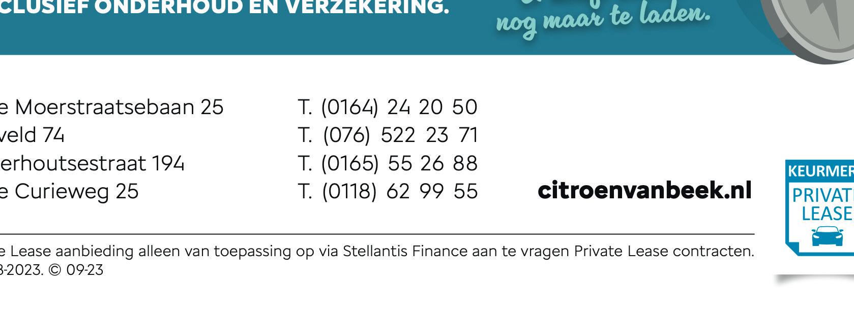*Actie geldig van 1 september tot 31 december 2023 • Kijk voor de voorwaarden op suzuki.nl/actie • Autotelex inruilwaardebepaling • Suzuki Financial Services leasetarief per maand o.b.v. Suzuki Private (Flex) Lease, 72 mnd, 5.000 km/jaar, wegenbelasting in provincie Gelderland en BTW, en excl. brandstof • Tarieven kunnen afwijken bij gekozen uitvoering, wijziging van opties, looptijd, kilometrage en gewicht. • meerkilometerprijs varieert tussen € 0,03 en € 0,19 per km, exacte prijs staat vermeld op de offerte • Toetsing en registratie BKR • Onder voorbehoud van acceptatie • Wijzigingen en typefouten voorbehouden • particulier@suzukifs.nl • Gemiddeld brandstofverbruik volgens de WLTP testmethodiek Euro 6-norm EC 2018/1832AP: 5,2 – 5,9 l/100 km; 19,2 – 16,9 km/l; CO2-uitstoot: 118 – 133 g/km. Auto Toonder B.V. Biezelingsestraat 50 · 4421 BT Kapelle · Tel 0113-343631 · suzuki.nl/auto-toonder Automobielbedrijf Moret B.V. Mercuriusweg 29 · 4382 NC Vlissingen · Tel 0118-419051 · www.suzuki.nl/auto/ dealers/automobielbedrijf-moret-bv Kom snel langs bij Auto Moret B.V. Handelspoort 6 · 4538 BN Terneuzen · Tel 0115-649000 · suzuki.nl/automobielbedrijf-moret