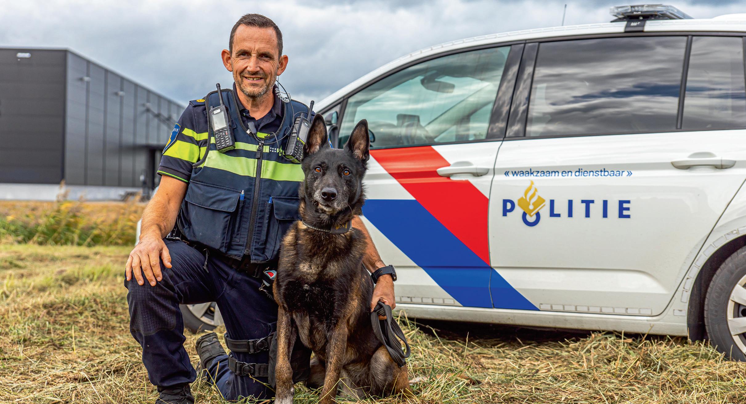“In 2017 ging ik in dienst bij de politie, met als werkgebied Zeeland-West Brabant. Ik was toen nog een jonge hond van drie jaar. Samen met mijn collega en geleider Erik Dorst vormde ik vanaf dat moment een vast team. Ik ben enorm gedreven, eigenwijs en heel sterk. Als ik iets op het spoor ben, moet en zal ik het vinden. Ik geef nooit op. Ik kan dan ook veel hoogtepunten opnoemen uit mijn carrière, want ik heb maar liefst twaalf verdachten opgespoord die zich schuilhielden of probeerden te vluchten. Eén bepaald incident zal me altijd bijblijven. Erik en ik waren onderweg naar een oefendag van de mobiele eenheid in Gilze-Rijen. We reden net ter hoogte van Goes toen we werden opgeroepen in verband met een gewapende woningoverval in Bergen op Zoom. De wijk was deels afgezet, omdat de verdachten er mogelijk nog zaten. Toen we daar aankwamen, duurde het nog geen tien minuten of ik had de eerste verdachte al gevonden. Die had zich goed verstopt in de struiken, want nog geen drie meter ervandaan stond een collega die niets gemerkt had. Je kunt je voorstellen dat dat voor haar wel heftig was. Na het aanhouden van deze eerste verdachte, merkte ik nog een ander spoor op. Ik trok Erik mee naar de achtertuin van de woning, waar ik een bepaalde geur rook aan een hek. Mijn collega hielp me eroverheen, zodat ik naar een container achter een tuinhuisje kon rennen. Daarin bleek de tweede verdachte te zitten. Al drie kwartier lang, helemaal opgevouwen... Dankzij mij hebben we dus allebei de verdachten kunnen aanhouden, gaaf he?