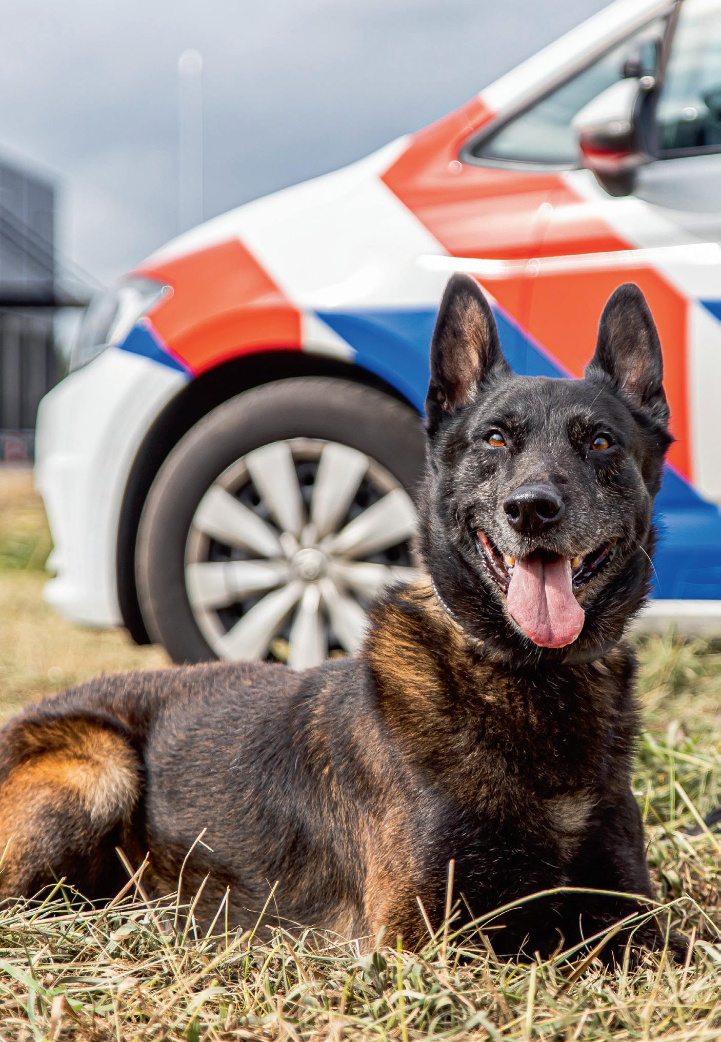 “In 2017 ging ik in dienst bij de politie, met als werkgebied Zeeland-West Brabant. Ik was toen nog een jonge hond van drie jaar. Samen met mijn collega en geleider Erik Dorst vormde ik vanaf dat moment een vast team. Ik ben enorm gedreven, eigenwijs en heel sterk. Als ik iets op het spoor ben, moet en zal ik het vinden. Ik geef nooit op. Ik kan dan ook veel hoogtepunten opnoemen uit mijn carrière, want ik heb maar liefst twaalf verdachten opgespoord die zich schuilhielden of probeerden te vluchten. Eén bepaald incident zal me altijd bijblijven. Erik en ik waren onderweg naar een oefendag van de mobiele eenheid in Gilze-Rijen. We reden net ter hoogte van Goes toen we werden opgeroepen in verband met een gewapende woningoverval in Bergen op Zoom. De wijk was deels afgezet, omdat de verdachten er mogelijk nog zaten. Toen we daar aankwamen, duurde het nog geen tien minuten of ik had de eerste verdachte al gevonden. Die had zich goed verstopt in de struiken, want nog geen drie meter ervandaan stond een collega die niets gemerkt had. Je kunt je voorstellen dat dat voor haar wel heftig