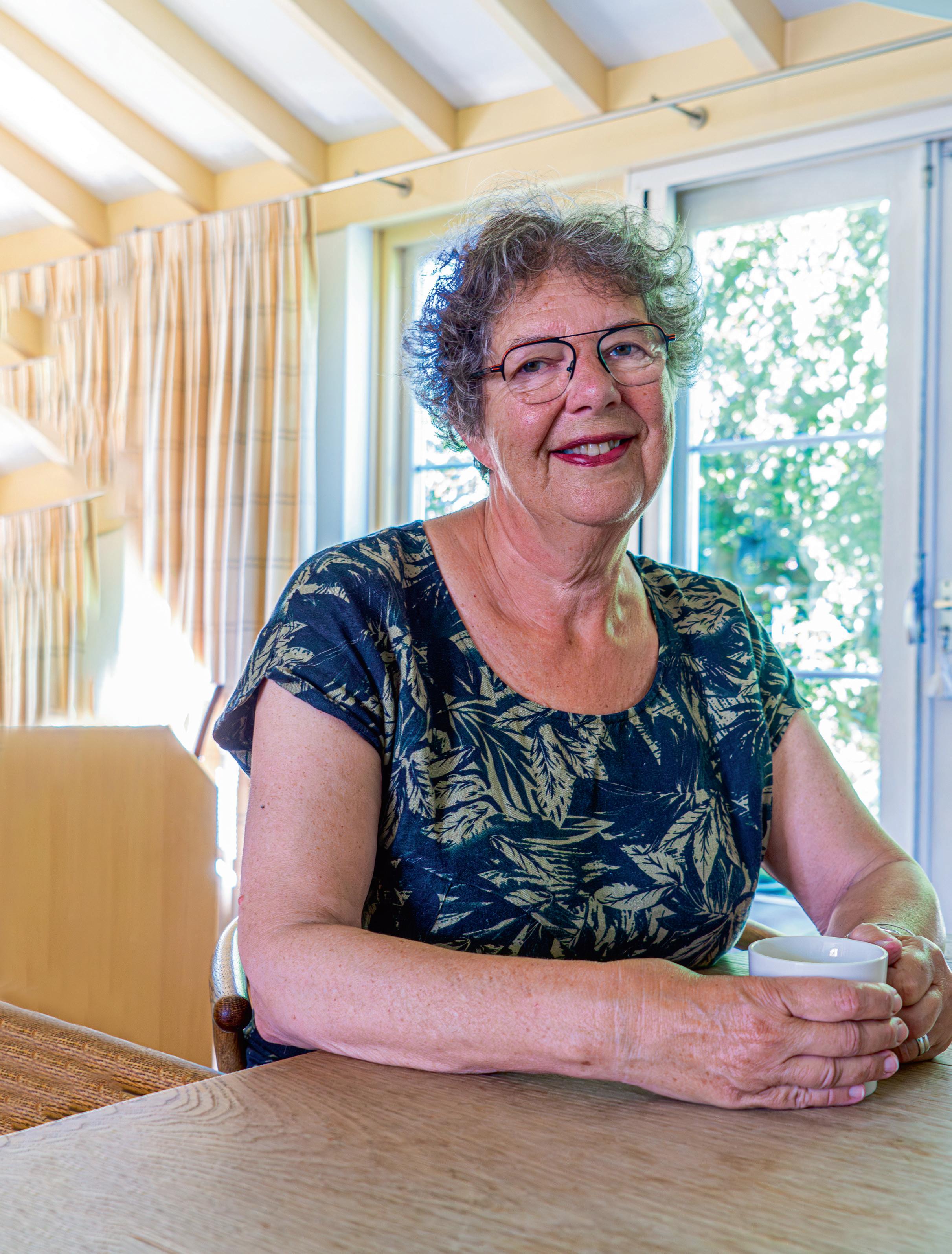 “Ik ben nu twee jaar gepensioneerd en sindsdien vrijwilliger bij het Alzheimer Café. De coördinator van het café was een collega van mij in het onderwijs en wist dat ik in familiekring te maken heb gehad met Alzheimer. Naar aanleiding daarvan leek het mij mooi een steentje bij te dragen. Ik weet namelijk hoe moeilijk het kan zijn om een naaste te hebben met Alzheimer. Mijn man en ik hebben jaren voor zijn tante gezorgd en zodoende leer je met de ziekte en de persoon om te gaan. Dit was voor mij ook de eerste keer dat ik met het proces van Alzheimer te maken had. Bij een persoon met Alzheimer of dementie is het belangrijk om rustig te blijven. In een gehaaste bui op bezoek gaan, heeft geen zin. Je moet de tijd nemen en er zonder verwachtingen langsgaan. Vragen als ‘Dat weet je toch nog wel?’ stel ik niet. Vaak weten de mensen met deze ziekte het echt niet, dus dan kun je het beter anders aanpakken. Herinneringen van vroeger aanhalen, vind ik altijd mooi om te doen. Er komen verhalen boven, mensen delen mooie anekdotes en je ziet weer even hoe hij of zij was voor de ziekte. Bij het Alzheimer Café voer ik ook fijne gesprekken en beantwoord ik vragen. Als vrijwilligers zorgen we ervoor dat bezoekers zich welkom voelen. Er is een tafel waar geïnteresseerden boeken kunnen lenen en ik sta achter de tafel met folders met informatie over dementie. Ik help mensen de juiste informatie mee naar huis te nemen. Tijdens een bijeenkomst halen we iedere keer een ander thema aan. Het is goed om te zien dat zowel mensen met dementie, als de partner of een ander familielid langskomen om informatie te vergaren. Ik haal veel voldoening uit dit vrijwilligerswerk en al bied ik maar één persoon een steuntje in de rug, dan is mijn tijd al welbesteed.”