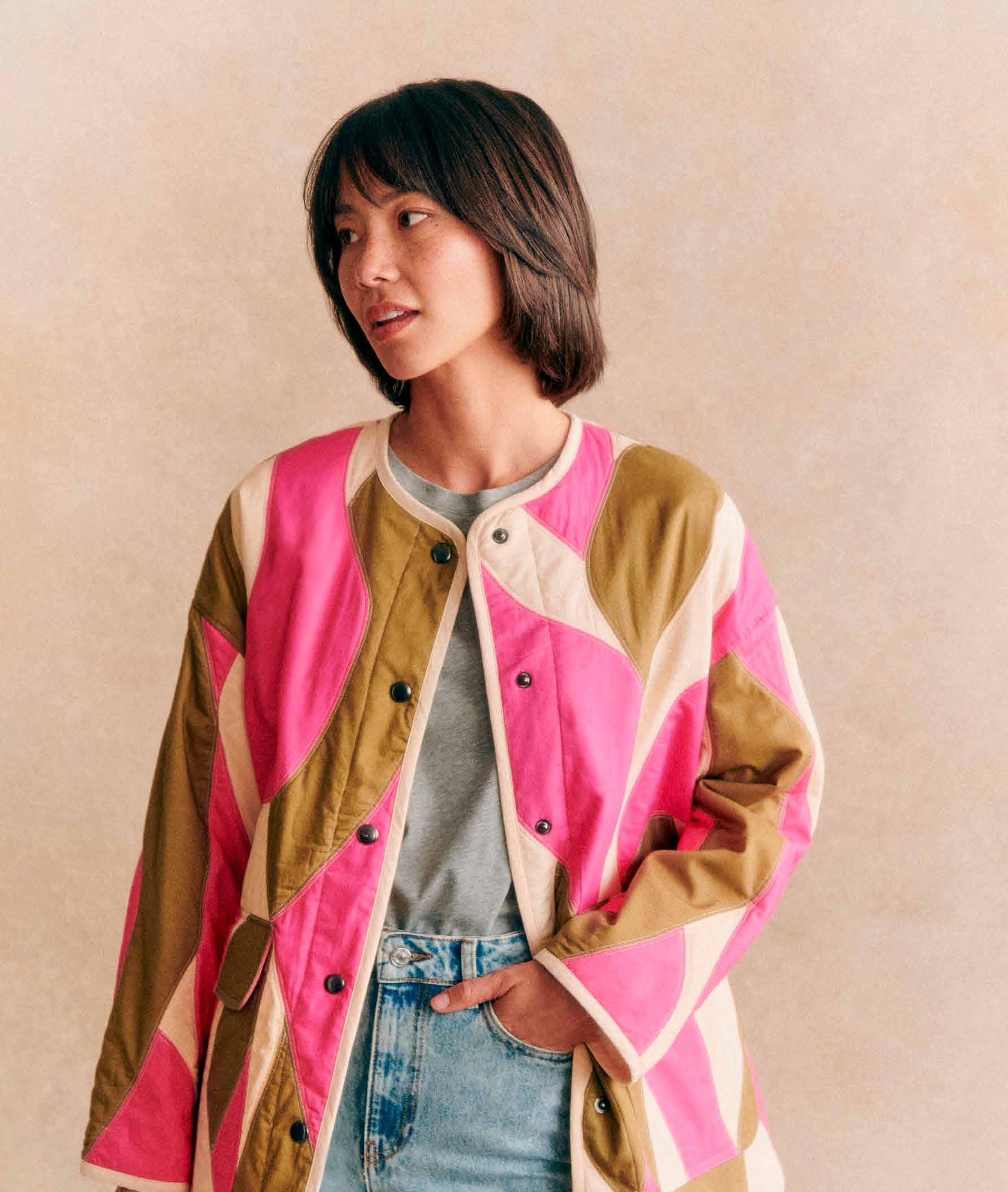 Deze beige Leaving puffer jas met hoge kraag heeft lange mouwen en een ritssluiting. Met een casual stijl is deze jas perfect voor het najaar en de winter, en biedt warmte en comfort. > moscowdesign.nl