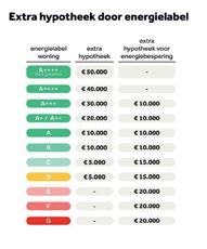 partij kan namelijk tot wel 50.000 euro meer lenen wanneer er een gunstig energielabel aanwezig is. verkopende partij kan hierdoor een hogere opbrengst realiseren voor de verkoop van zijn woning