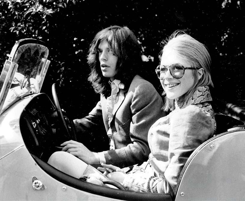 Counterclockwise from top right: Marianne Faithfull, Desmond Guinness and Mick Jagger, 1968; Lupita Nyong’o; Pragnell Skimming Stone Diamond Drop earrings; Stubbs & Wootton Corsini heels; Kristin “Clotilde” Holby photographed by Bruce Weber for Ralph Lauren in 1984; Tamara Comolli Turquoise MIKADO BOUQUET pendant; The Marbella Club; Manolo Blahnik and Anjelica Huston photographed by David Bailey in 1974; a look from Ralph Lauren’s Fall 2025 collection; Belperron gold bangles; Hampton Sun products; J.McLaughlin Lilly Straw Clutch; J.McLaughlin Riley Sunglsses in Tortoise.