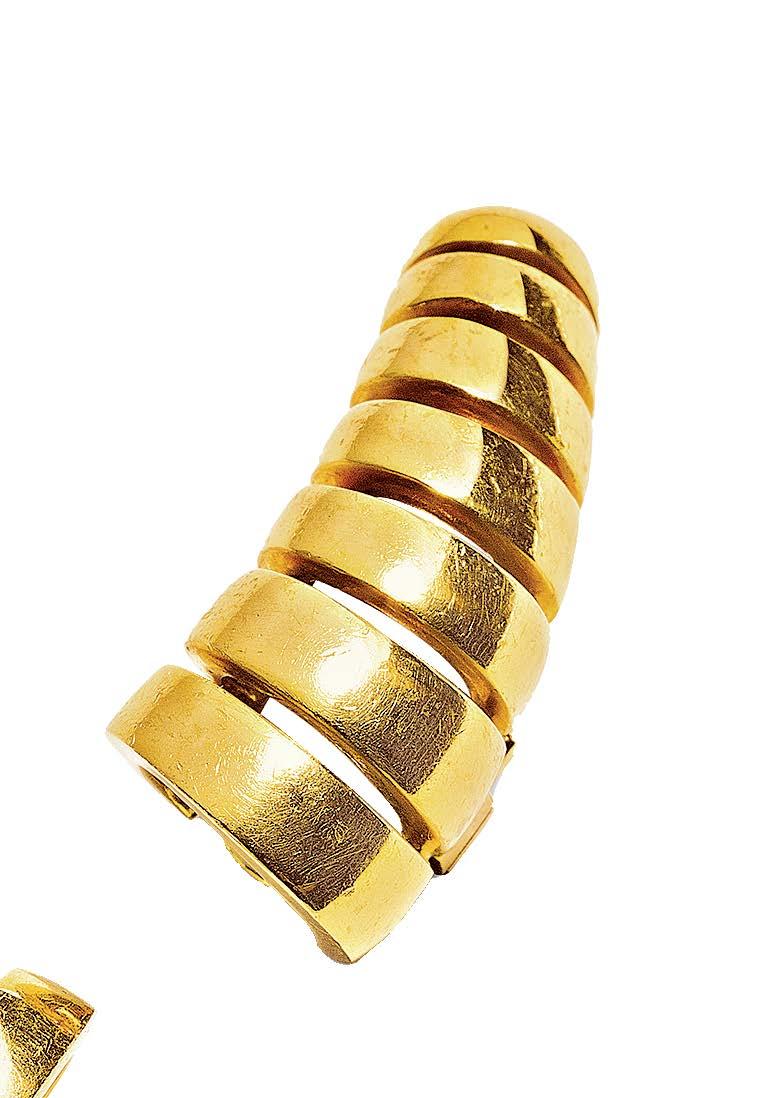 Inspired by Verdura’s collaboration with Coco Chanel, the South Sea Pearl “Y” Necklace reflects the jewelers casual treatment of pearls, intended to be worn—and enjoyed—day or night. $52,500 at verdura.com or call 212.758.3388. 18k Yellow Gold Fire Ring, $7,800 at greenleafcrosby.com.