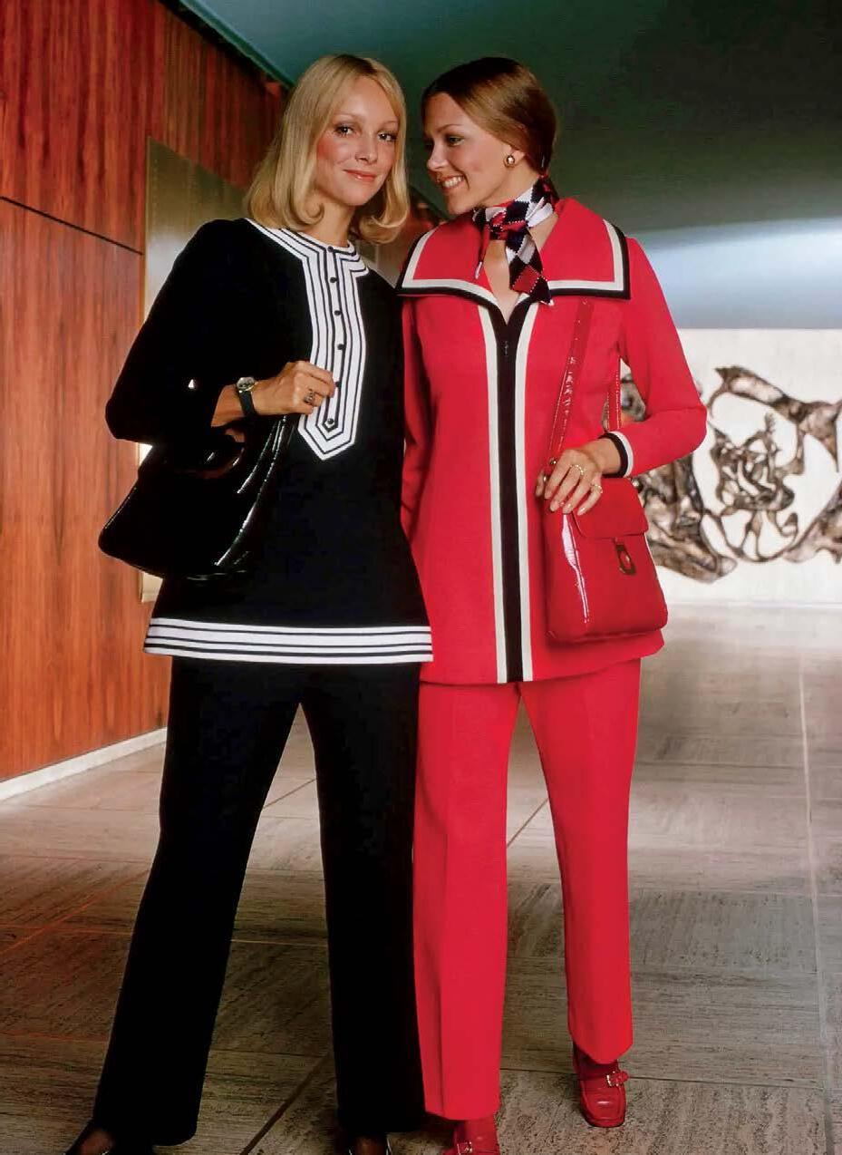 ing for a pantyhose collection in her hometown of Geldrop, Nether lands. The wheels of her career started spinning when her brother, Theo, made an appointment for her to meet with Corine Rottshäfer’s modeling agency in Amsterdam. Soon young Apollonia found her self traveling to Paris and New York, before signing an exclusive contract with American Vogue in 1972. Van Ravenstein became one of the most sought-after models of the 1970s, a known face of the House of Halston and Diane von Fürstenberg. Above, she wears Halston’s wool top and cashmere pants with an Elsa Peretti pendant for Halston Ltd., photographed by David Bailey for Vogue in 1972.
