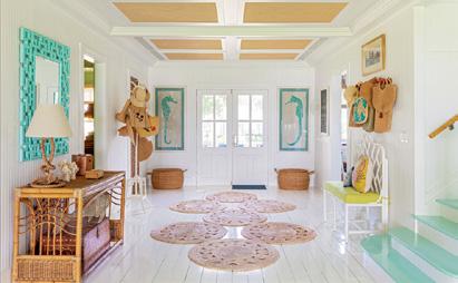 Renowned decorator Phoebe Howard worked closely with the owners and the Seabreeze team to bring the décor concept to life, sourcing most of the furniture and decorative pieces from local vintage stores. Some favorite features include a custom bamboo bar, blue gingham kitchen, and cane entryway ceilings.