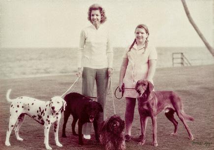 PAULINE BAKER PITT & CALLIE BAKER HOLT (WITH ROSIE, BEAN & PRUDENCE) IN PALM BEACH, FL