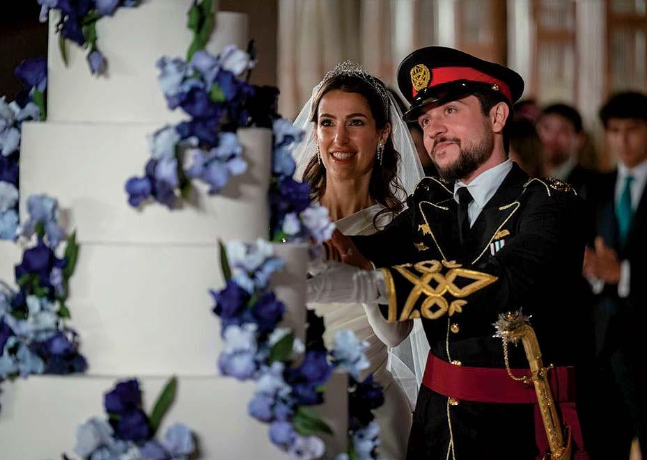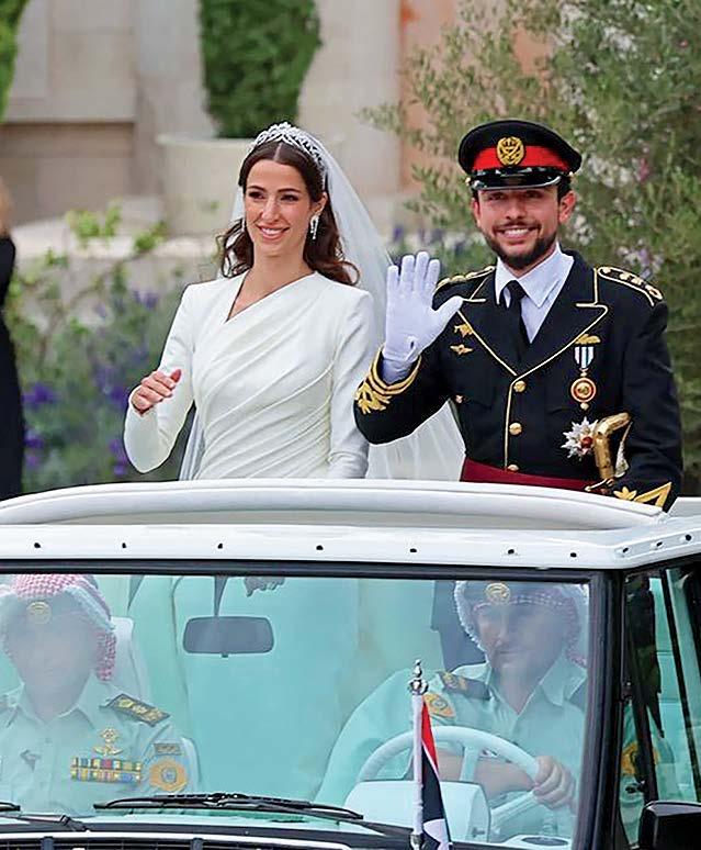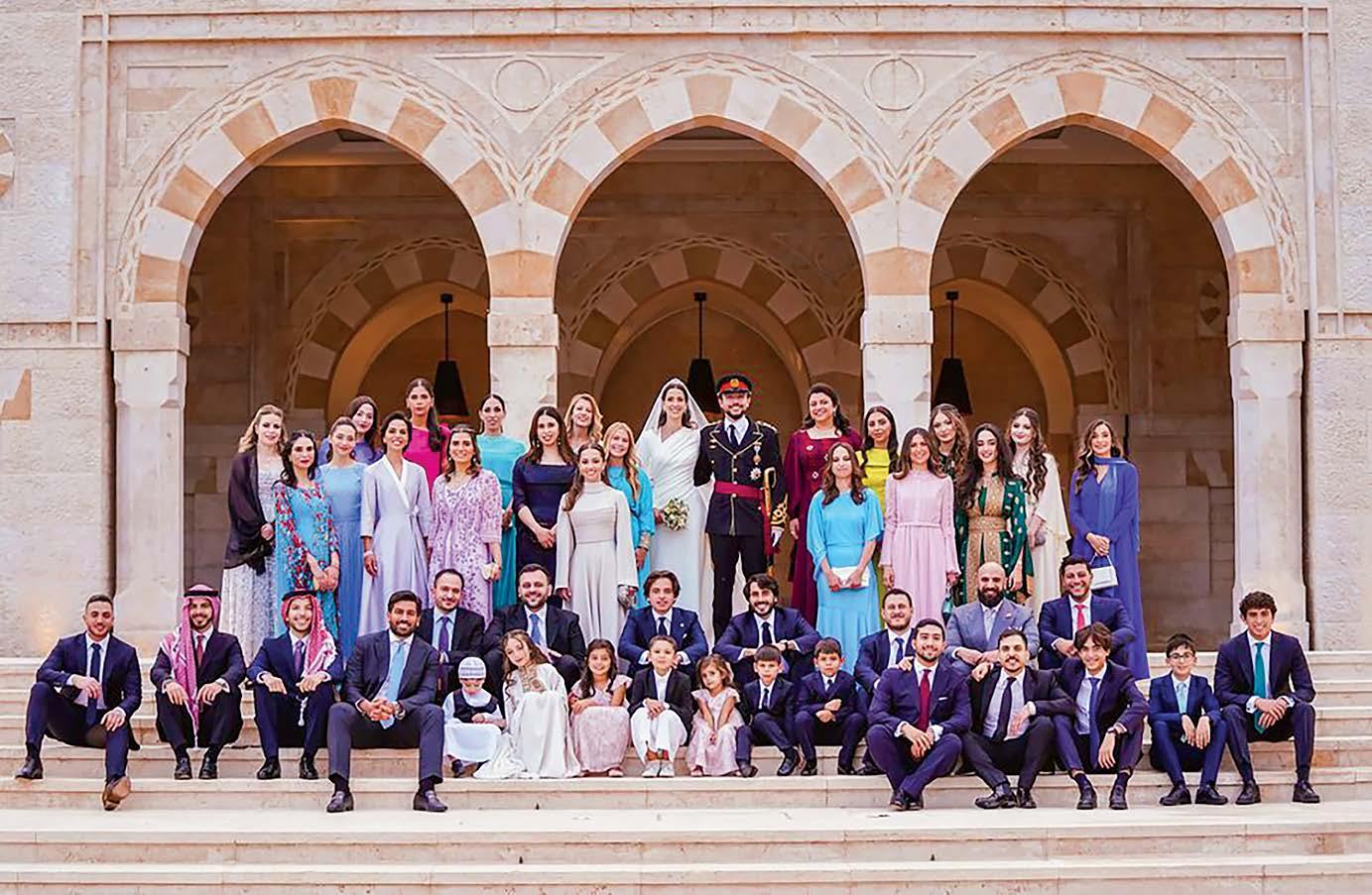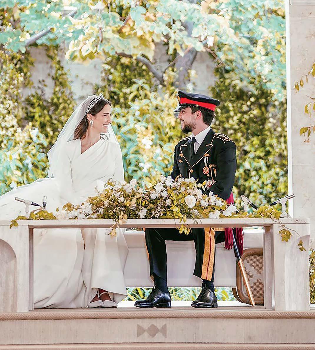 Rajwa Al Saif wed Al Hussein bin Abdullah, Crown Prince of Jordan and the son of King Abdullah II and Queen Rania, in the gardens of Zahran Palace in Amman, the same venue where King Abdullah II and Queen Rania married in 1993. The wedding procession made its way through the streets to Al Husseiniya Palace, where the newlyweds greeted 1,700 guests before the reception. Among the distinguished attendees were the Prince and Princess of Wales, First Lady Jill Biden, Princess Beatrice and Edoardo Mapelli Mozzi, and King Willem-Alexander and Queen Máxima of the Netherlands.