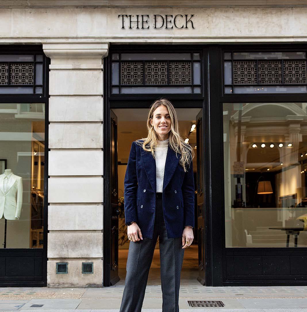 Daisy Knatchbull is on a mission to change tailored clothes for women, and to offer successful, style conscious women a compelling alternative to fast fashion. She founded The Deck in early 2019, and the brand has since received glowing reviews in the fashion press, dressed some of the most influential female actors, entrepreneurs, and creatives working today, and opened the first women’s-only shopfront on Savile Row. The Deck is determined to establish itself as the leading tailoring house for women internationally, and to stand alongside its neighbors on Savile Row as a respected and innovative tailoring house. “This brand is all about empowering women to feel confident, sexy and like they’re making the right wardrobe choices,” Knatchbull says.