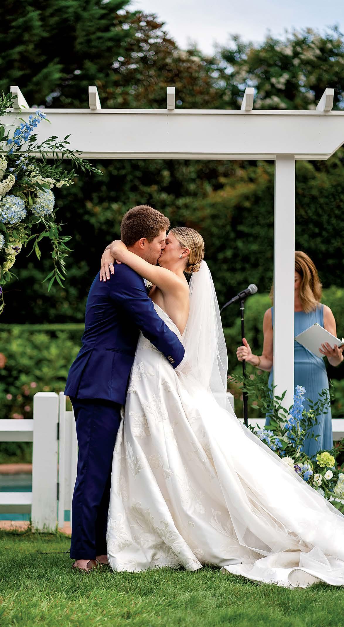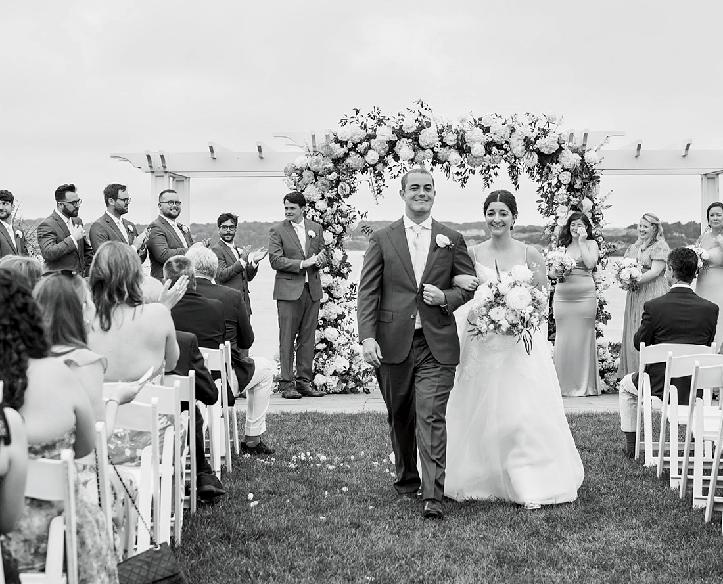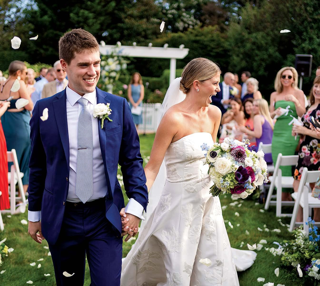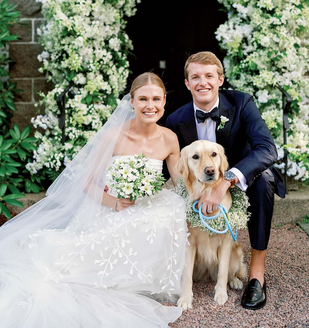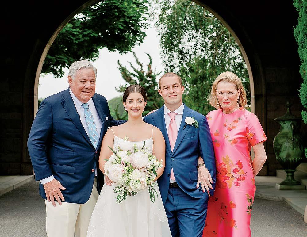 Isabel and Rhoads were married in front of 170 guests at OceanCliff. The weekend kicked off with a rehearsal dinner at the International Tennis Hall of Fame. For the ceremony, the bride wore a Jenny Yoo gown, and her father, Bill Keogh, walked her down the aisle. After the service, guests enjoyed a reception with dinner, dancing, and a cake from Gingersnap Bakery. The couple shared their first dance to “Can’t Take My Eyes Off of You” by Frankie Valli and the Four Seasons. In memory of Rhoads’ late mother, Alane, he shared a dance with his childhood nanny, Bibi Moonsamy. The newlyweds traveled to Hawaii for their honeymoon.