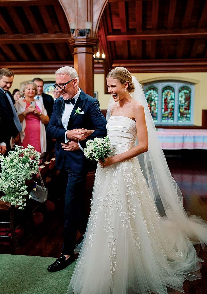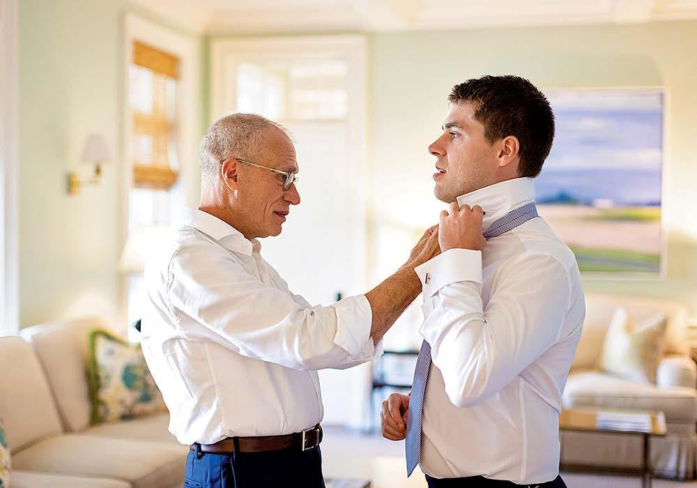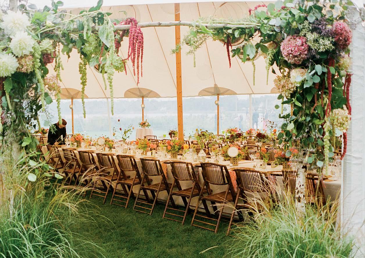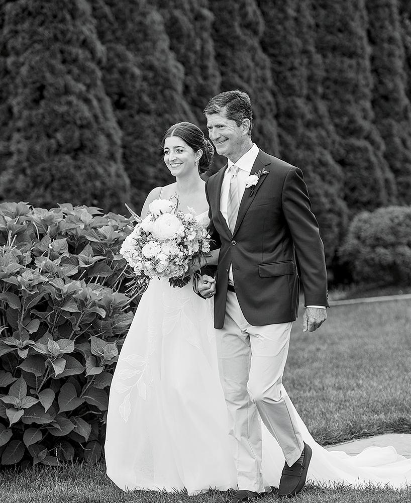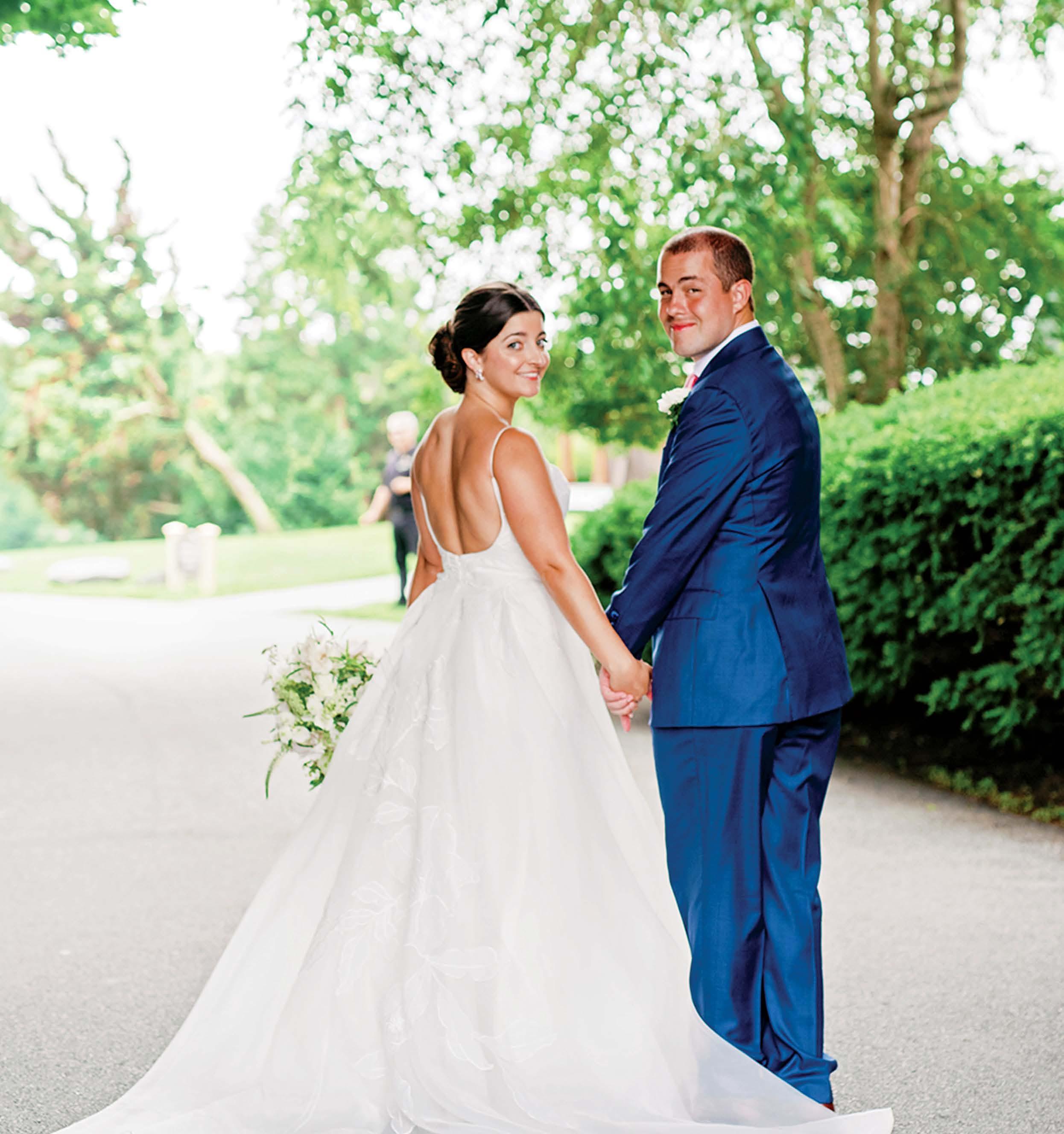 Isabel and Rhoads were married in front of 170 guests at OceanCliff. The weekend kicked off with a rehearsal dinner at the International Tennis Hall of Fame. For the ceremony, the bride wore a Jenny Yoo gown, and her father, Bill Keogh, walked her down the aisle. After the service, guests enjoyed a reception with dinner, dancing, and a cake from Gingersnap Bakery. The couple shared their first dance to “Can’t Take My Eyes Off of You” by Frankie Valli and the Four Seasons. In memory of Rhoads’ late mother, Alane, he shared a dance with his childhood nanny, Bibi Moonsamy. The newlyweds traveled to Hawaii for their honeymoon.