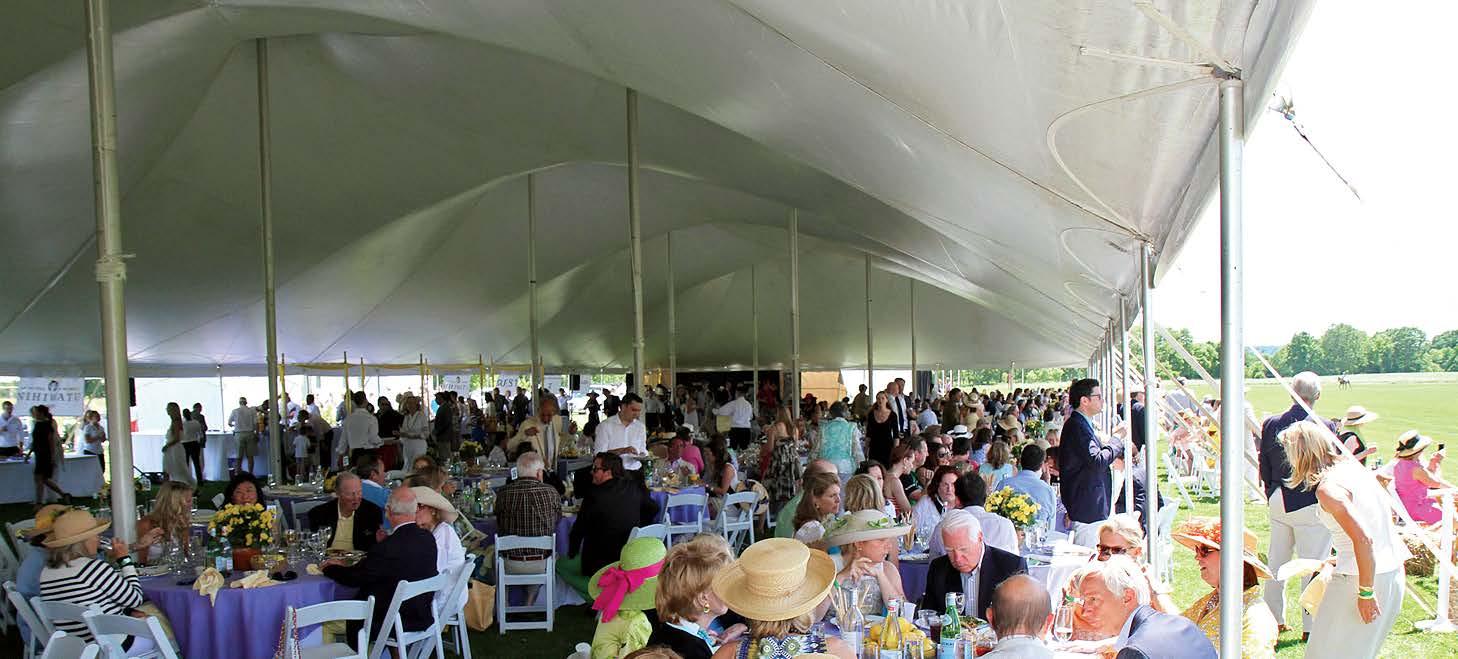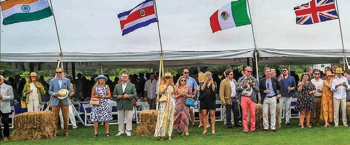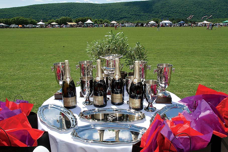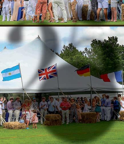 noon with an elegant Champagne Reception followed by a Tented FieldSide Luncheon. The excitement begins with great fanfare as the parade of international flags are led onto the field, followed by the dashing teams of mounted players. Following the match is the awards ceremony with presentations made by our sponsors and their representatives. This year,