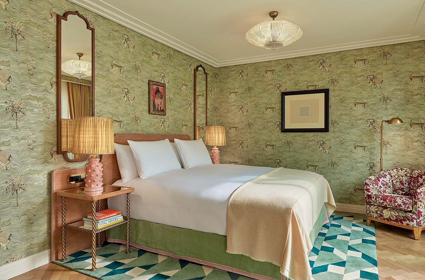 Designed by acclaimed architects Rogers Stirk Harbour + Partners (the talents behind London’s Lloyd’s building and the ‘Cheesegrater’), the building’s interiors were envisioned by Curiosity, a Tokyo-based studio inspired by nature. Elegant green Ming marble, prominent throughout the hotel’s public spaces, reflects the greenery of Hanover Square, including on the sweeping spiral staircase leading from the lobby to the lower level.
