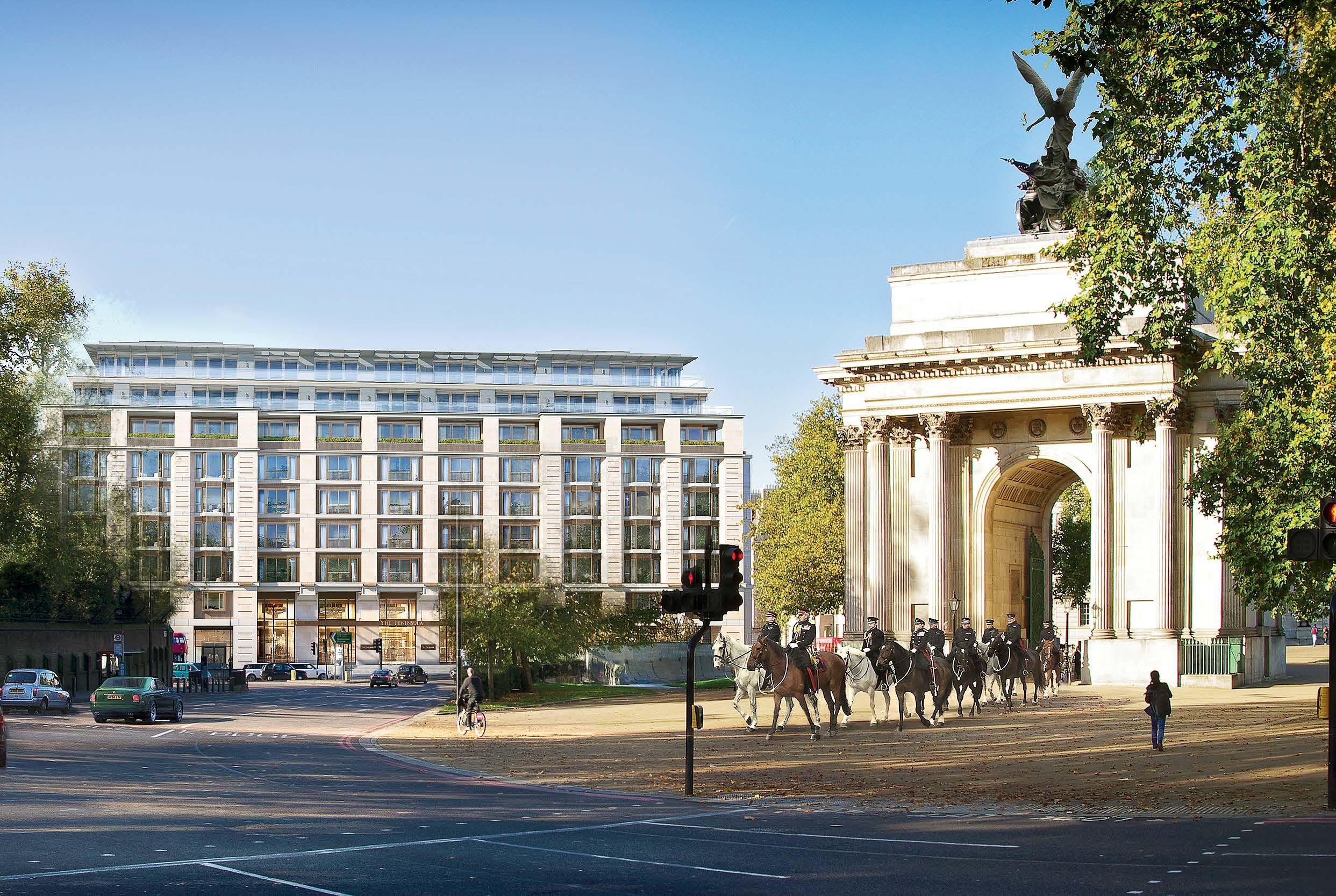 Opened in September 2023, The Peninsula London is centrally located at the intersection of Hyde Park Corner and the Wellington Arch. This grand hotel boasts 190 guest rooms and suites, along with 25 private residences. Guests can indulge in world-class culinary experiences at the rooftop restaurant Brooklands, which serves British classics; Canton Blue and its adjacent bar Little Blue for exquisite Chinese cuisine and cocktails; The Lobby for traditional afternoon tea, often accompanied by live music; and Peninsula Boutique and Café for casual bites throughout the day. The hotel also features a spa and wellness center, offering a range of therapies—both ancient and modern—and access to a 25-meter swimming pool.