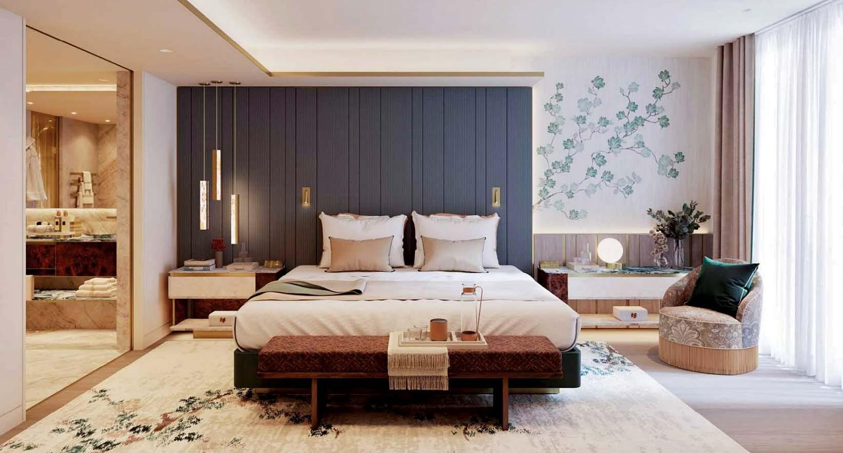 With modern architecture led by the late Richard Rogers and Ivan Harbour of RSHP, The Emory features a contemporary steelwork design that Harbour compares to “watchmaking on a grand scale,” likening the building to a Swiss timepiece. The public spaces, with interiors designed by Rémi Tessier, include the popular abc kitchens restaurant from renowned chef Jean-Georges Vongerichten and The Emory Bar on the ground floor. The rooftop, offering 360-degree views of the capital’s skyline, is home to Bar 33 and The Emory Cigar Merchants, both of which are open exclusively to hotel guests or for private events.