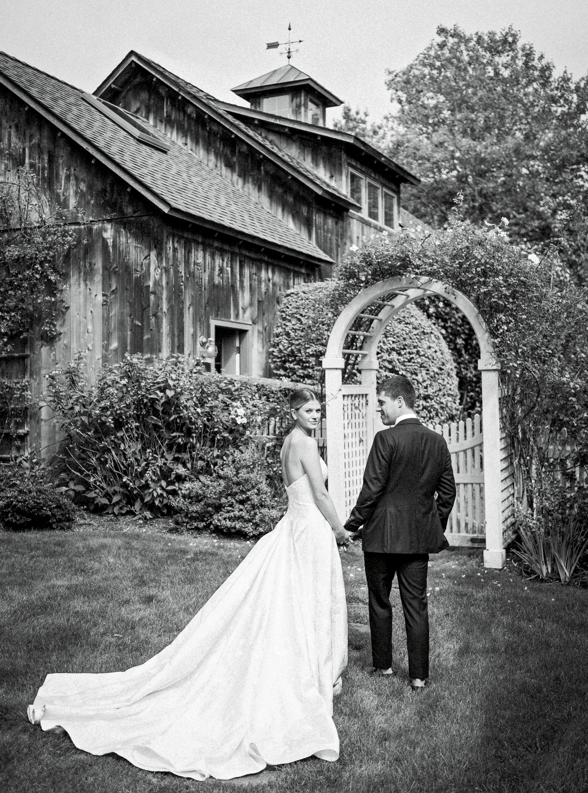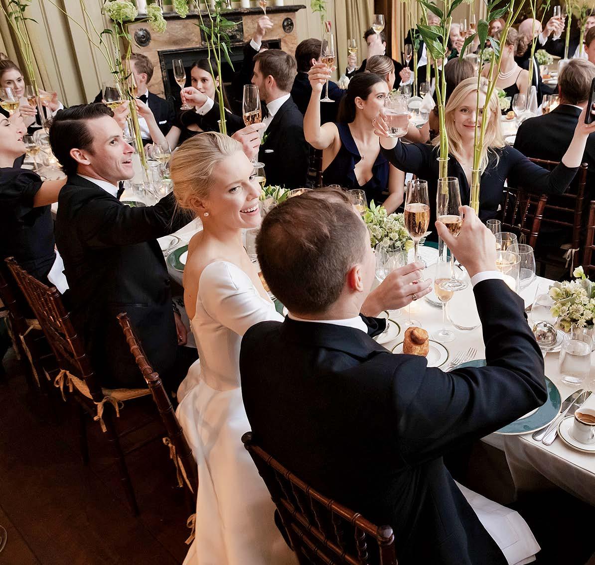Caroline and Grayden tied the knot before 175 guests at a private club. The bride wore a Danielle Frankel dress and was escorted down the aisle by her parents, Roger Griswold and Stephanie Fairchild. Due to heavy rain, the couple opted for a “surprise ceremony” indoors after the rehearsal dinner during the welcome party. The move was a huge hit, easing nerves about the weather for the weekend. The following evening, a reception was held at the bride’s family home, where guests enjoyed dinner and cake prepared by Stone Creek Inn.