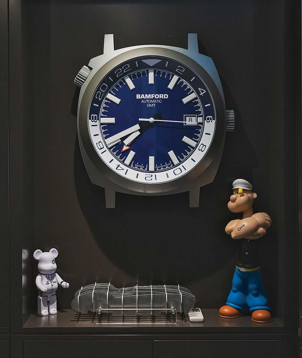 AN AVID COLLECTOR of watches and vintage cars from a young age, George Bamford is the founder of Bamford London, a company known for creating original timepieces like the Bamford Mayfair Sport and collaborative models with brands such as Harrods and Peanuts Worldwide. He also established the Bamford Watch Department (BWD), a division that customizes designs from other watchmakers. BWD was born out of Bamford’s desire to make his Rolex Daytona, a gift for his 18th birthday, unique after noticing many others had the same watch. He applied a DLC coating to the steel, turning it black. While on vacation in the South of France, his customized Rolex garnered significant interest, leading to 25 orders upon his return to the UK. For Bamford, personalization is paramount. “I’ve always loved the idea of it. If you go back to the original Rolls-Royces, you could get a unique car designed just for you, and I thought that the option of personalization was really missing in the watch world,” said Bamford.