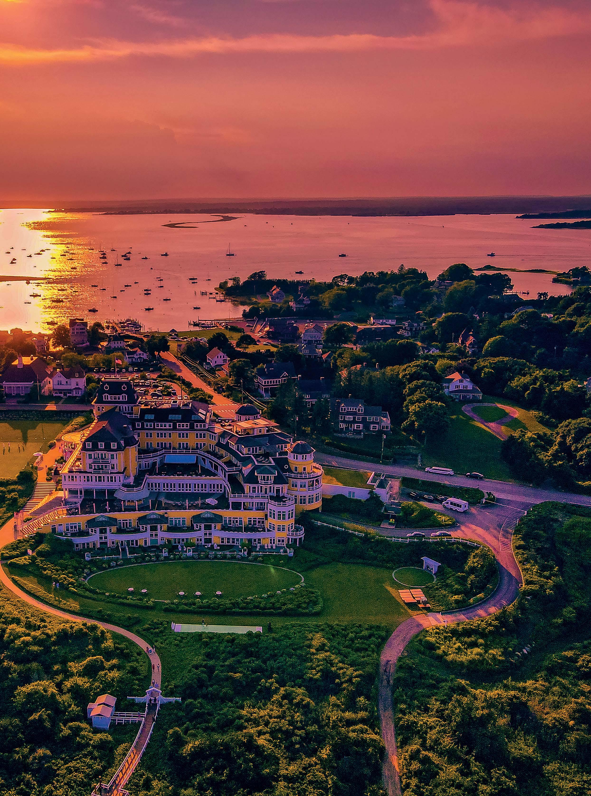 FEW PROPERTIES successfully balance the natural beauty of the sea and a sense of community quite like Ocean House. As the last of the grand Victorian-era hotels in Watch Hill, Ocean House offers a step back in time to an era of refined elegance, paying homage to New England’s golden age. Perched high on the bluffs with its iconic yellow facade overlooking the Atlantic, the hotel has maintained the character and charm of its storied past while being completely updated with modern amenities. Since the early 19th century, the resort has remained one of only 14 triple Five-Star hotels in the world. Accommodations range from guest rooms to suites to residences, and the property features restaurants that serve local cuisine and the five-star Oh! Spa. The private beach, where guests can enjoy paddle boarding, fishing, and sunset lobster boils, makes Ocean House ideal for summer getaways.