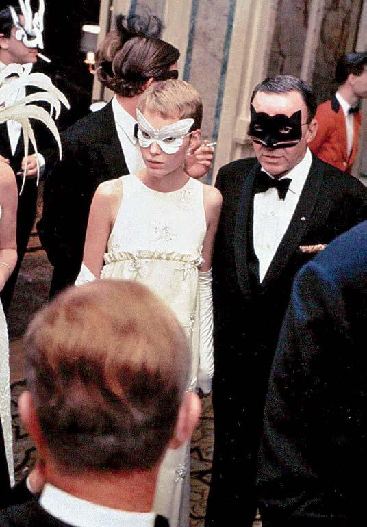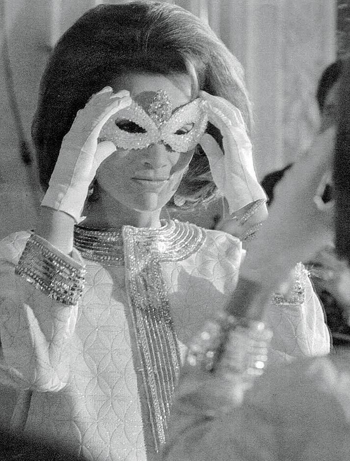 , attend the Black and White Ball at the Plaza Hotel, November, 28 1966. 2. Newlyweds Mia Farrow and Frank Sinatra. 3. One of Capote’s most beloved swans, Lee Radziwill, dons her mask for the occasion. 4. Radziwill on Capote’s arm, enjoying the party. 5. Andy Warhol was said to be overwhelmed by the amount of celebrities in attendance.