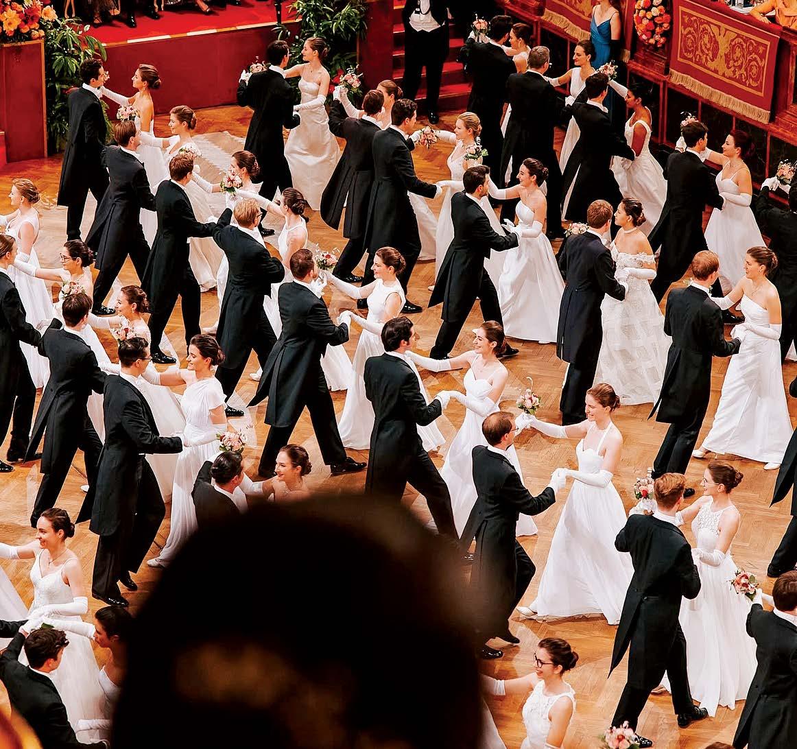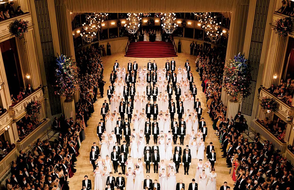 1. The Vienna Opera Ball enjoys a rich history of glamour and old-world charm, as politicians, celebrities and business leaders alike gather to enjoy the fairytale-ilke setting. Held annually at Austria’s Vienna State Opera, the evening begins with a Waltz, as 150 debutantes in floor-length, white evening gowns are led by partners dressed in requisite white tie. 2. Candice Swanepoel, Leni Klum and Ed Westwick attend the 2025 Vienna Opera Ball. 3. Elle Macpherson and Richard Lugner in 2019. 4. Sophia Loren joins Richard and Christina Lugner’s box in 1995. 5. Priscilla Presley in 2024. 6. An overhead view of the ball in 2025.