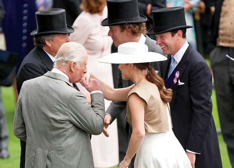 3. An enthusiastic Jerry Hall. 4. The Duchess of Gloucester 5. Lord Frederick Windsor 6. King Charles offers niece Princess Eugenie a sweet kiss. 7. Harriet Sperling, girlfriend of Queen Elizabeth II’s oldest grandchild, Peter Phillips. 8. Ashton Gohil tips his hat. 9. Princess Beatrice and Edoardo Mapelli Mozzi enjoy a day at the races.