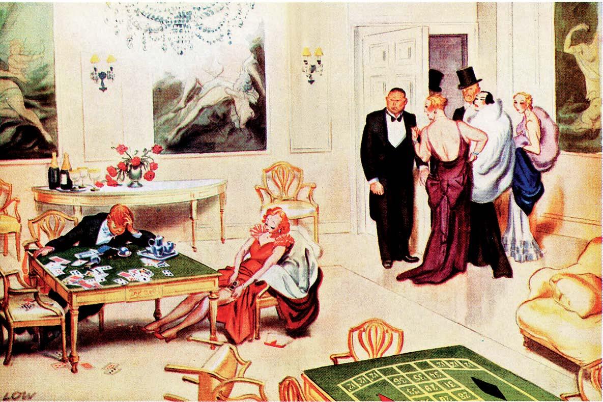 WHEN JOURNALIST Rebecca West penned and Sir David Low illustrated (above) The Modern “Rake’s Progress”—an update of Hogarth’s 1735 cautionary tale of a young man’s rise and fall in society—West’s unconventional lifestyle had already set her on a precarious progression of her own. The prolific writer set the literary world’s tongues wagging at the early age of 19 when she began a torrid affair with 46-yearold H.G. Wells; the ten-year tryst produced a son, New Yorker critic Anthony Panther West. Rebecca went on to have famous affairs with Charlie Chaplin, Francis Biddle, and Lord Max Beaverbrook, while still finding time to write social and political commentary The New Republic, Atlantic Monthly, and a
