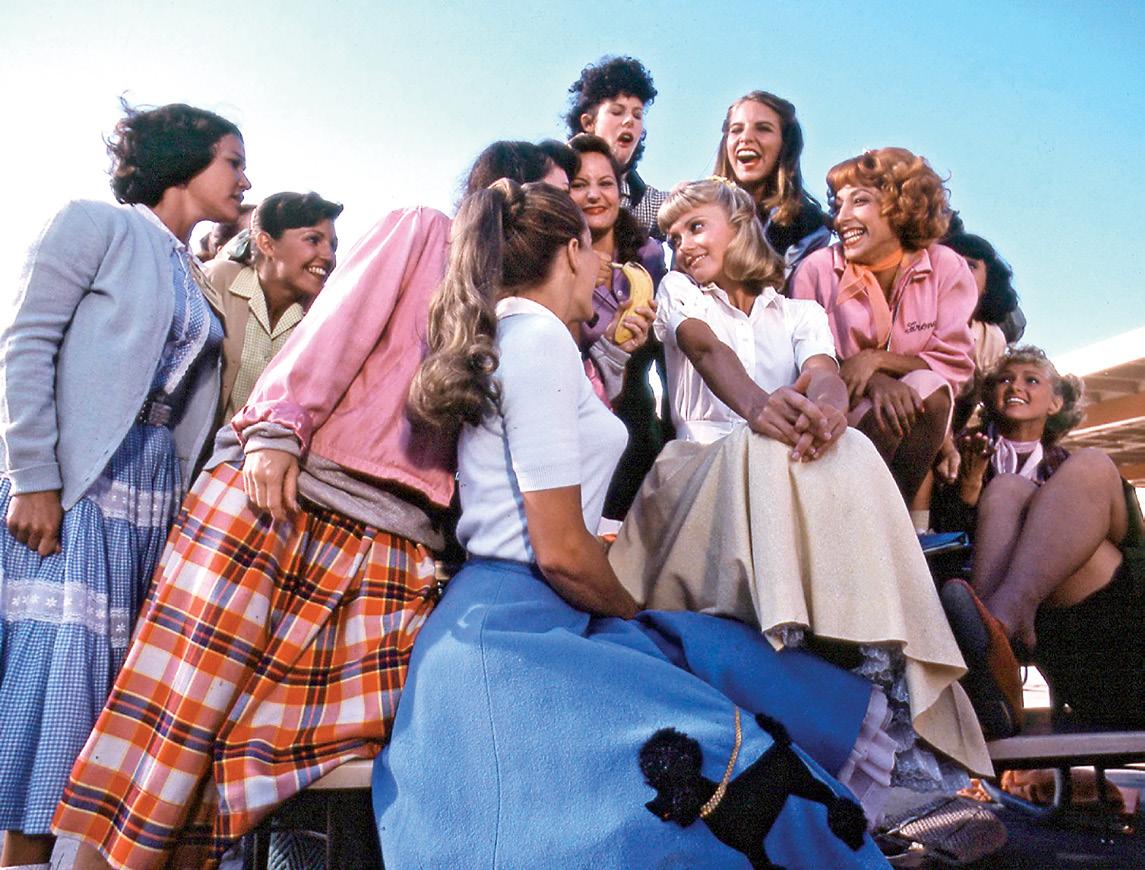 “Tell me about it, stud And with that line, it wasn’t just John Travolta’s high-school-aged Danny Zuko who got chills—the whole world went wild as they watched Olivia Newton-John undergo a complete transformation from innocent, twinsets, and calf-length-skirts-wearing cheerleader Sandy Olsson (with the perfect ponytail)—into an utterly “electrifying” bombshell with big blonde hair, bright rosy lips, and spray-on leather trousers. Few character makeovers have had quite the same impact as that sex bomb, black leather and spandex reveal at the end of the 1978 hit film, Grease.