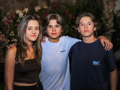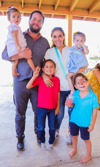 Linda Castillo con sus nietos Loretta y Fede y sus amigos.