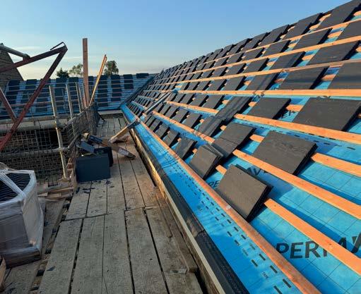 The batten provided support for the 41,000 SIGA13S 500x250mm slates, which were used on the project. Sourced from Northern Spain the slates are 5mm in depth and are smooth dark blue/grey slate offering a rustic character. SIG Roofing also provided 160kg of copper nails, 587 Marley clay capped angle ridges and a dry ridge fixing pack, Fix-R GRP slate valleys and Klober slate vents to complete the job. More at www.sr-timber.co.uk