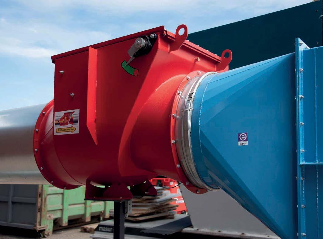 return valve ensures that resultant pressure and flames are restricted from travelling back down the ductwork and into the factory.