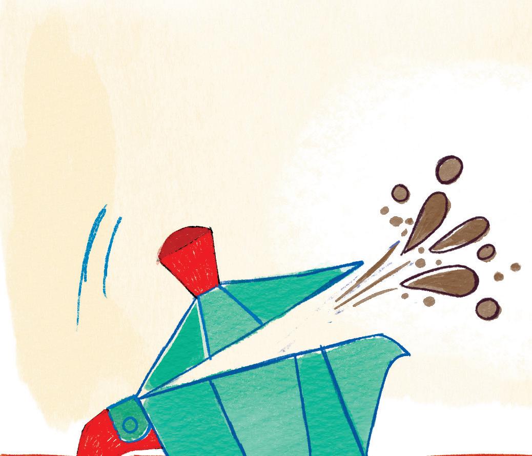 AZIONE IL FISCHIO DELLA CAFFETTERIA, MENTRE LELE STA
