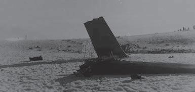 WRECKAGE: Remains of Lancaster JB474 12 hours after the crash