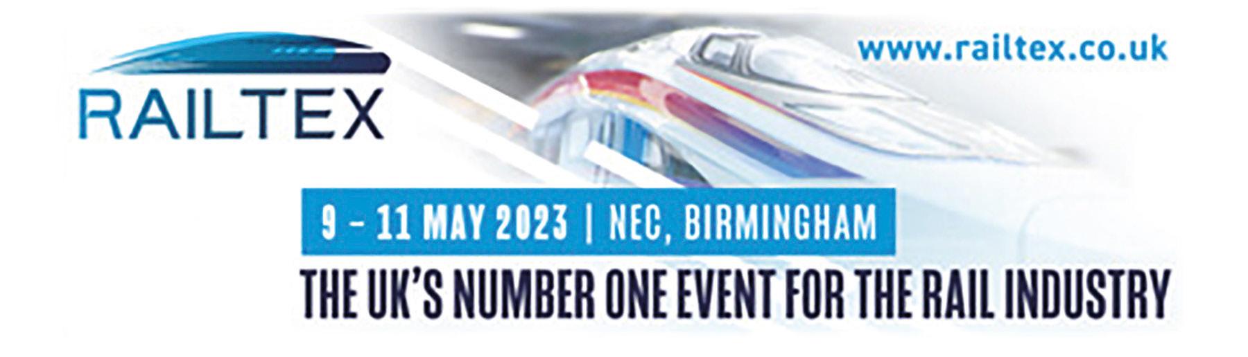 Also in this magazine you can read the informed, thought-provoking articles from suppliers who are building on the railway’s long-standing history, bringing innovative, modern solutions to the industry to deliver a railway fit for the 21st century. Why not visit them at Railtex? Take a look at our Supplier Spotlight on p.10 to find their stand.