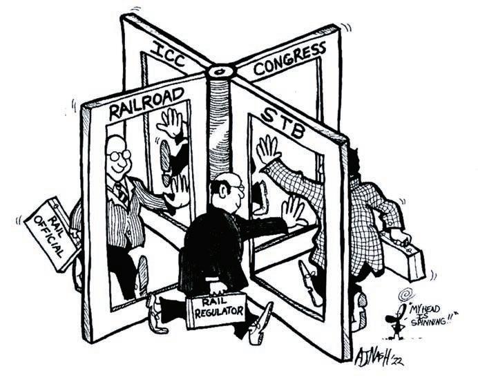 But the most stunning historical reminder to this old railroad guy was the cartoon image of the revolving door on page 362 (Appendix G)—something over my long rail career I had not considered as “roadblock” behavior. I was a bit naive. In 2023, is this still the appointment pattern? Maybe less so.