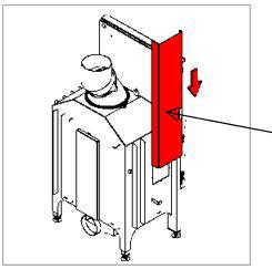 On delivery, the door is locked for transport and must be released before installation. This is done by removing the two transport screws in the counterweights on the back of the oven!