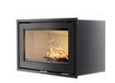 Med sine eksepsjonelt store vinduer gir RAIS Visio L en spesiell opplevelse av ilden og en helt unik følelse av å sitte ved et åpent ildsted. Den diskré rammen understreker innsatsens stilrene og elegante preg.