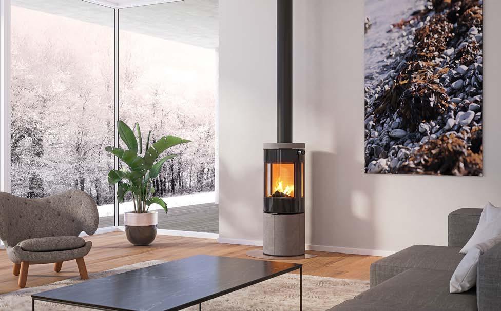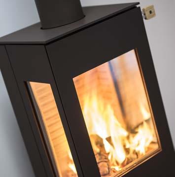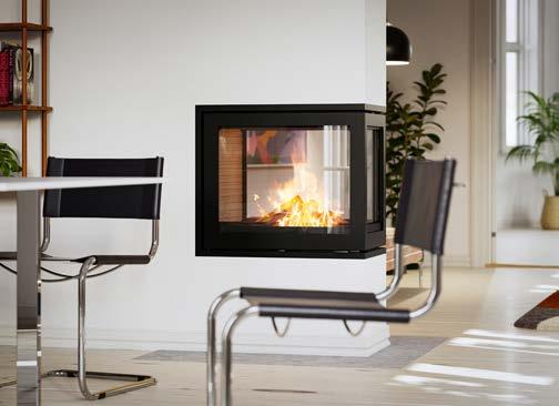 Konstant behagelig og varm romtemperatur ved hjelp av moderat strålevarme, selv ved ovner med store glassruter.