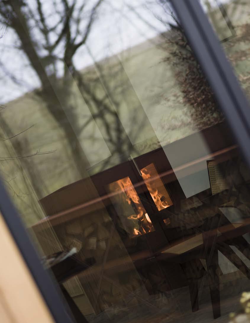 Nyt et fritt blikk inn på flammene gjennom rene, sotfrie vinduer med vårt Advanced Glass Concept. Ved å bruke coated glass eller to lag glass som reflekterer strålevarmen, sørger vi for høy temperatur i brennkammeret og unngår at rutene sotes til.
