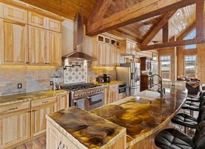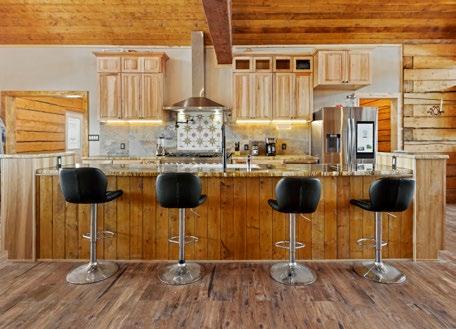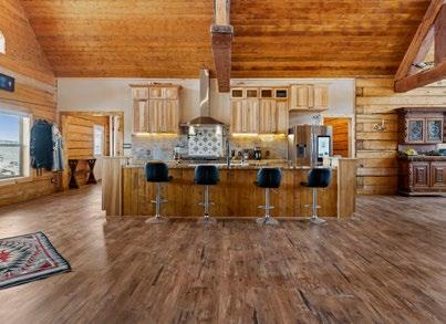 The home is built with Square D 10” Lodgepole Pine Logs. When you enter the great room, you will view three 28-foot Hammer trusses and one 20-foot truss, creating a pillar-free, expansive space. The main floor is home to the great room, kitchen, walk-in pantry, handcrafted rock fireplace with materials sourced from on-site, large owner suite with a jacuzzi tub, double vanity area, walk-in shower/ steam room. A large laundry and guest bath are located on the same level.