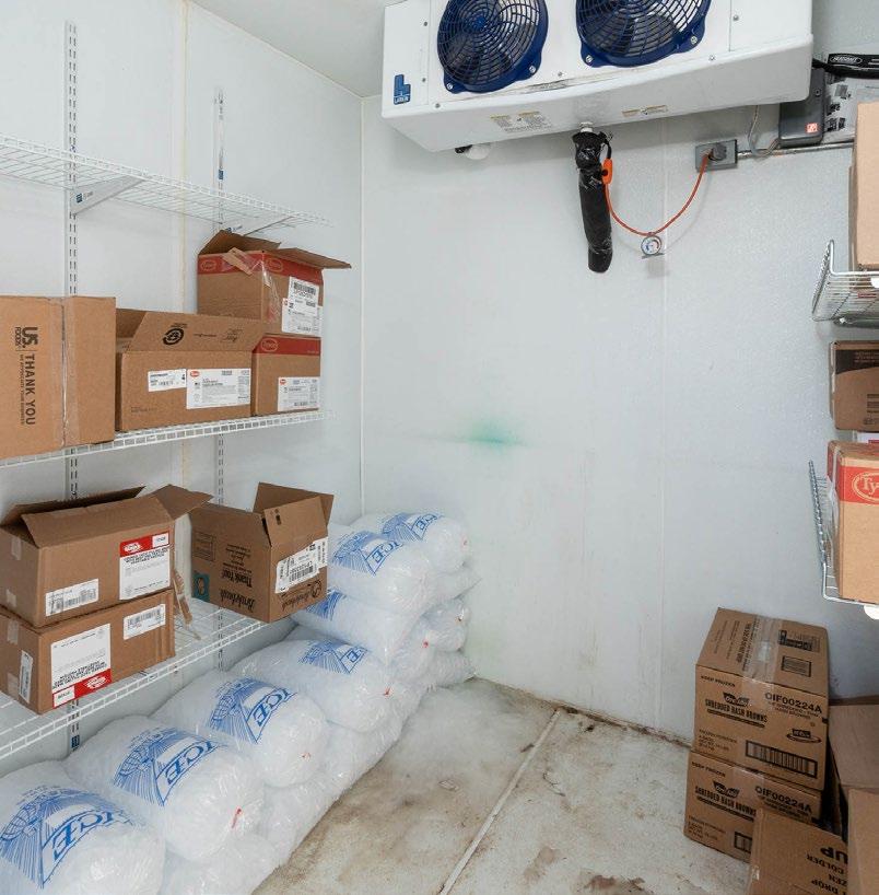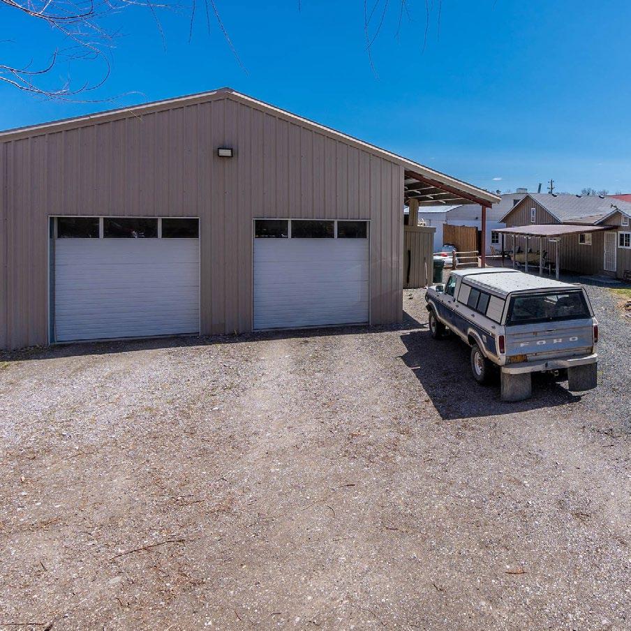 The 900± square-foot shop directly north of the home is a newer built metal framed and sided shop with two roll-up doors and extended eve creating covered storage. Under the covered wing is a self-standing walkin freezer space used mostly for the storage of ice, a big seller, and other frozen goods. The interior of the building is insulated and has a woodframed storage loft that sits above a finished full bathroom and tool bench. This building provides all kinds of uses, whether for the business or the owners’ toys and recreation.