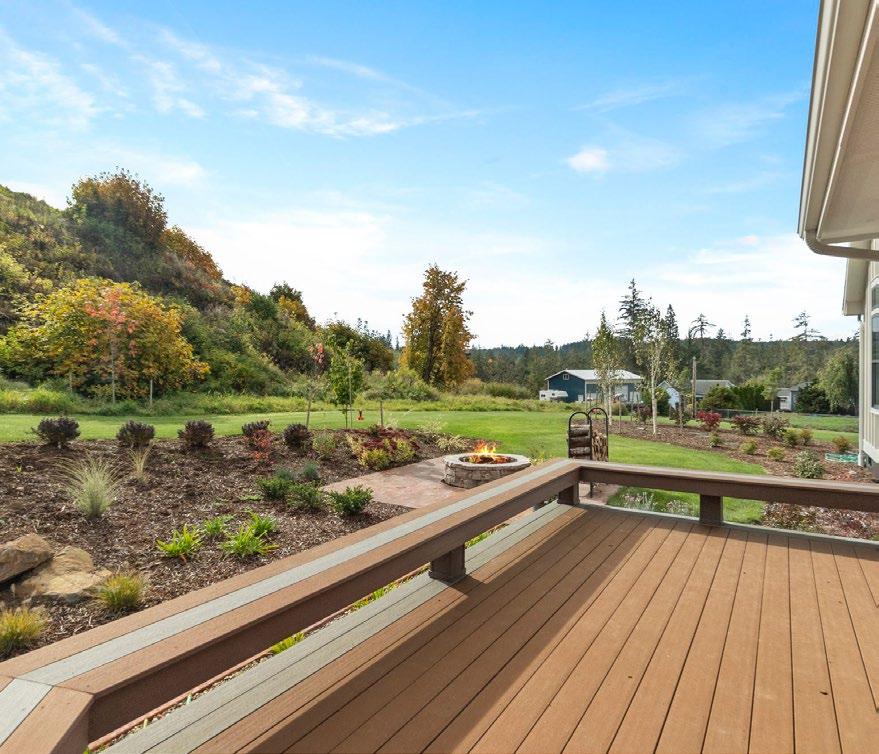 This custom home was built in 2021 and offers thoughtful and functional living with the highest quality finishes, including the vaulted tongue and groove ceiling in the living area that was milled from cedar trees harvested from the 34± acre property. This home offers a spacious design with 12-foot ceilings, oversized solid core alder wood doors, recessed lighting along with a unique chandelier in the oversized entryway, and pendant lights in the open concept kitchen. This beautiful kitchen hosts quartz countertops punctuated with high-end stainless-steel appliances, including a chef-inspired dual-sided gas range, a s mart refrigerator, and abundant solid-core alder wood custom cabinets. Enjoy preparing the prized catch of the day while entertaining friends and family at your 14-foot island with bar seating featuring a recessed double sink, an energy-efficient dishwasher, and a built-in wine cooler.