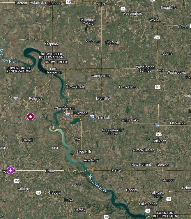 Winner Regional Airport (ICR), located 35+ minutes from White River Hunting Retreat & Production Ground. This general aviation airport features a 5,500foot runway capable of accommodating small jets and private aircraft, making it convenient for personal or chartered travel. Fuel services and basic amenities are available on-site. For commercial flights, the nearest major airport is Pierre Regional Airport (PIR), approximately 1.5 hours north, offering daily service to Denver International Airport. Travelers seeking more extensive commercial options can also access Sioux Falls Regional Airport (FSD), located about 3.5 hours to the east.