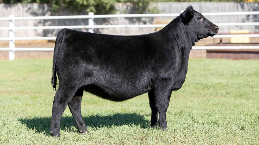 Brooking Madame Pride 5025 will no doubt have a lineup of friends come sale day—just like her sister in last year’s event. If you appreciate heifers that combine rib shape and dimension with extra bone, ideal teat placement, striking eye appeal, and a stout, powerful build, this female deserves your attention. A maternal sister commanded $70,000 in last year’s sale, selling to Stormy River Ranch. Her dam is a shared cow with Roger Reynolds and was purchased from the renowned Schaff Angus Valley program. SAV Madame Pride 8037 continues to impress every visitor to the ranch with her mass, fleshing ability, ideal udder structure, soundness, fertility, and overall productivity. The Emerald daughters are developing into tremendous brood cows, and Brooking Madame Pride 5025 follows that same path. If you’re in search of a future donor with elite maternal potential, make sure this heifer is marked in your catalog.