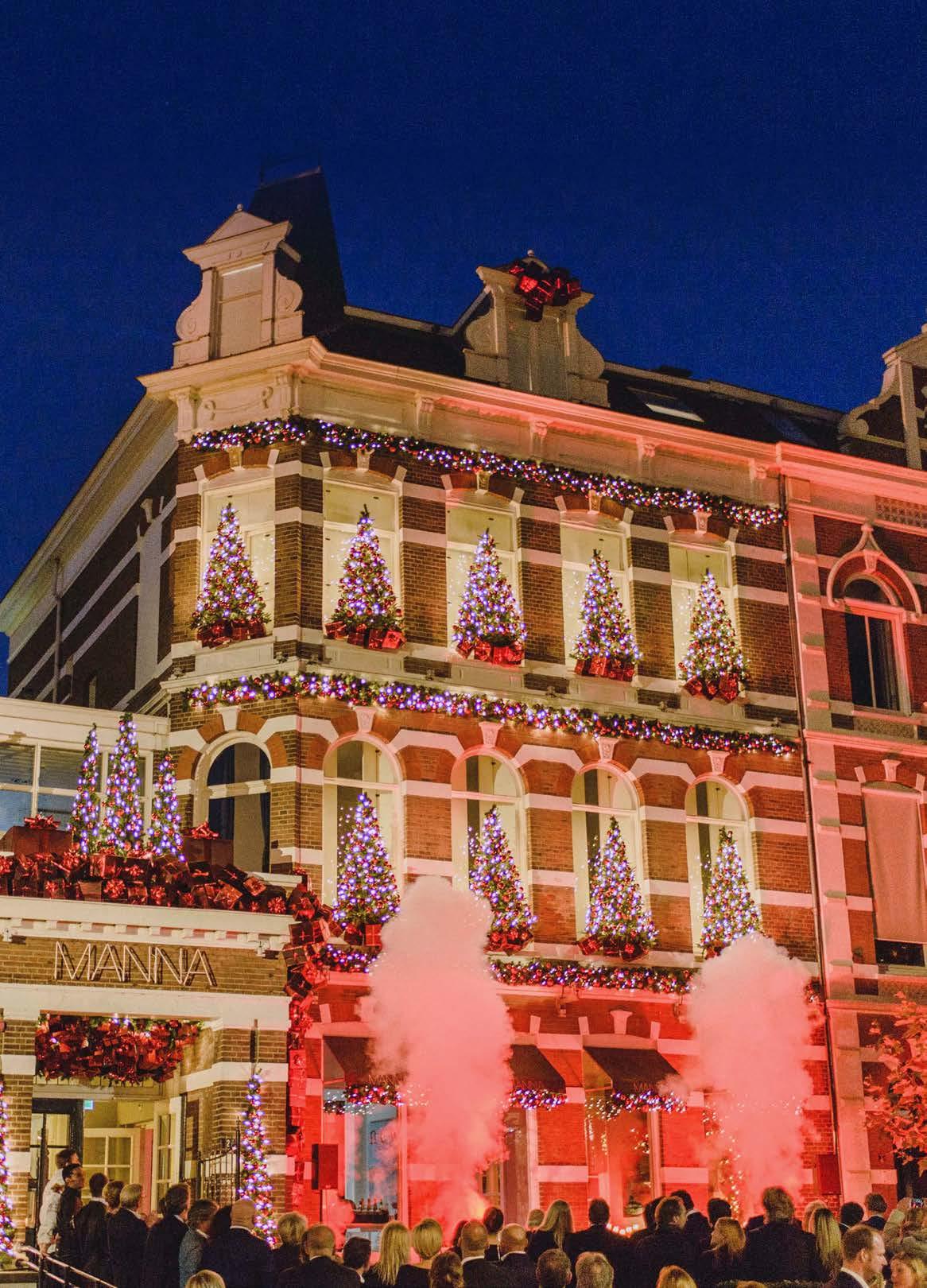 Op een ochtend begeef ik me in de stromende regen naar MANNA. Eenmaal daar, moet ik toch een paar deuren verder zijn, bij Hotel Blue. Ik krijg een royale paraplu mee, want zelf had ik niet goed naar de weermannen en -vrouwen geluisterd. Zowel MANNA als Hotel Blue worden gerund door Sander Hendrix, Aïda Papilaja-Hendrix en natuurlijk hun geweldige team. Ik krijg een warm onthaal, wat het najaarsweer direct naar de achtergrond doet verdwijnen. Hetzelfde effect heeft de iconische kerstverlichting die men elk jaar bij MANNA ontsteekt. En laat dat nou nét afgelopen donderdag zijn geweest, tijdens de grootse Tree Lighting Ceremony!